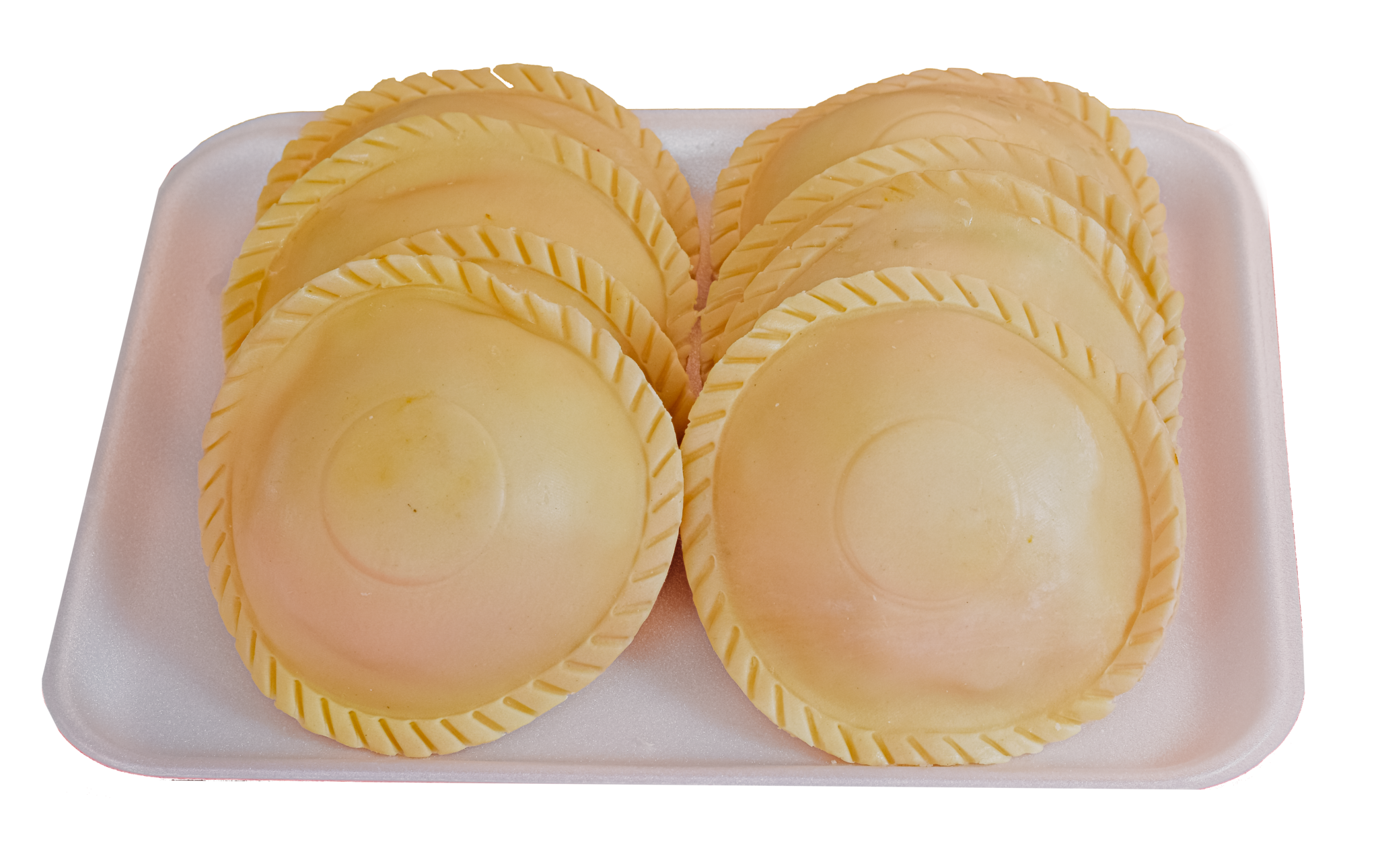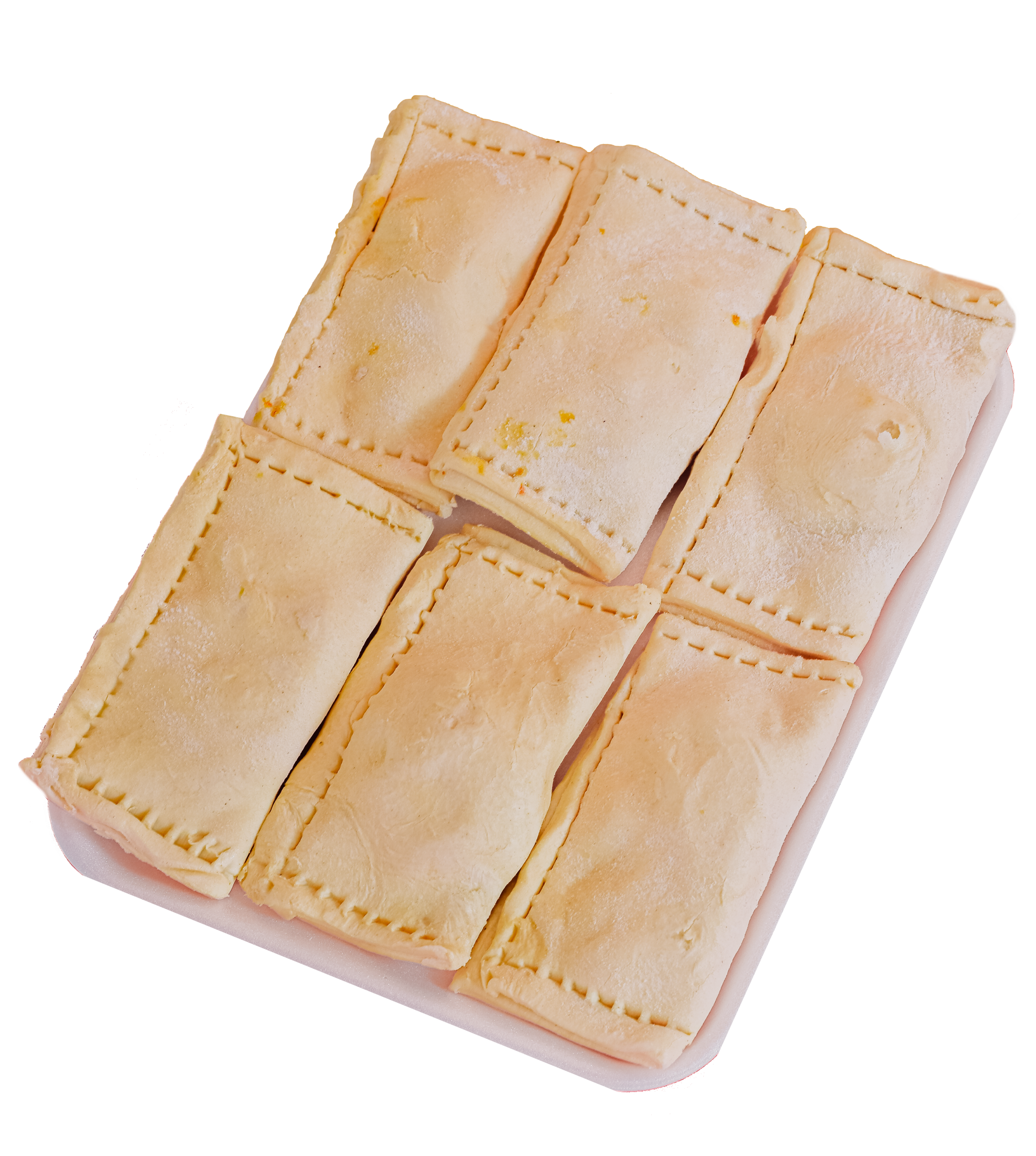 Bandeja de 10 empanadas  de 100 gramos, listas para freír y disfrutar.sabores:ranchera,suiza, hawaiana,pollo jamón,maíz con tocineta , jamón con queso,santandereana y Hawaiana